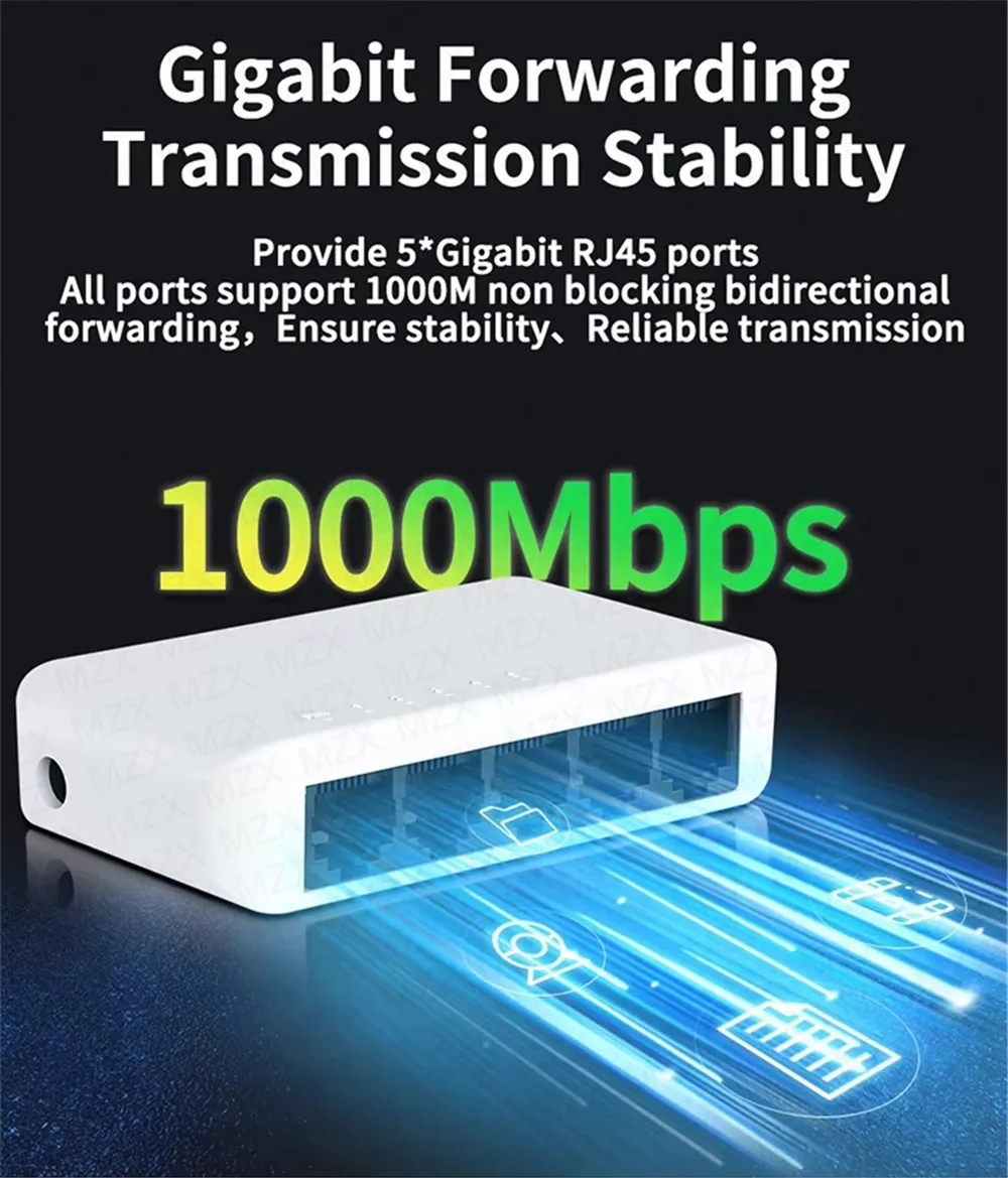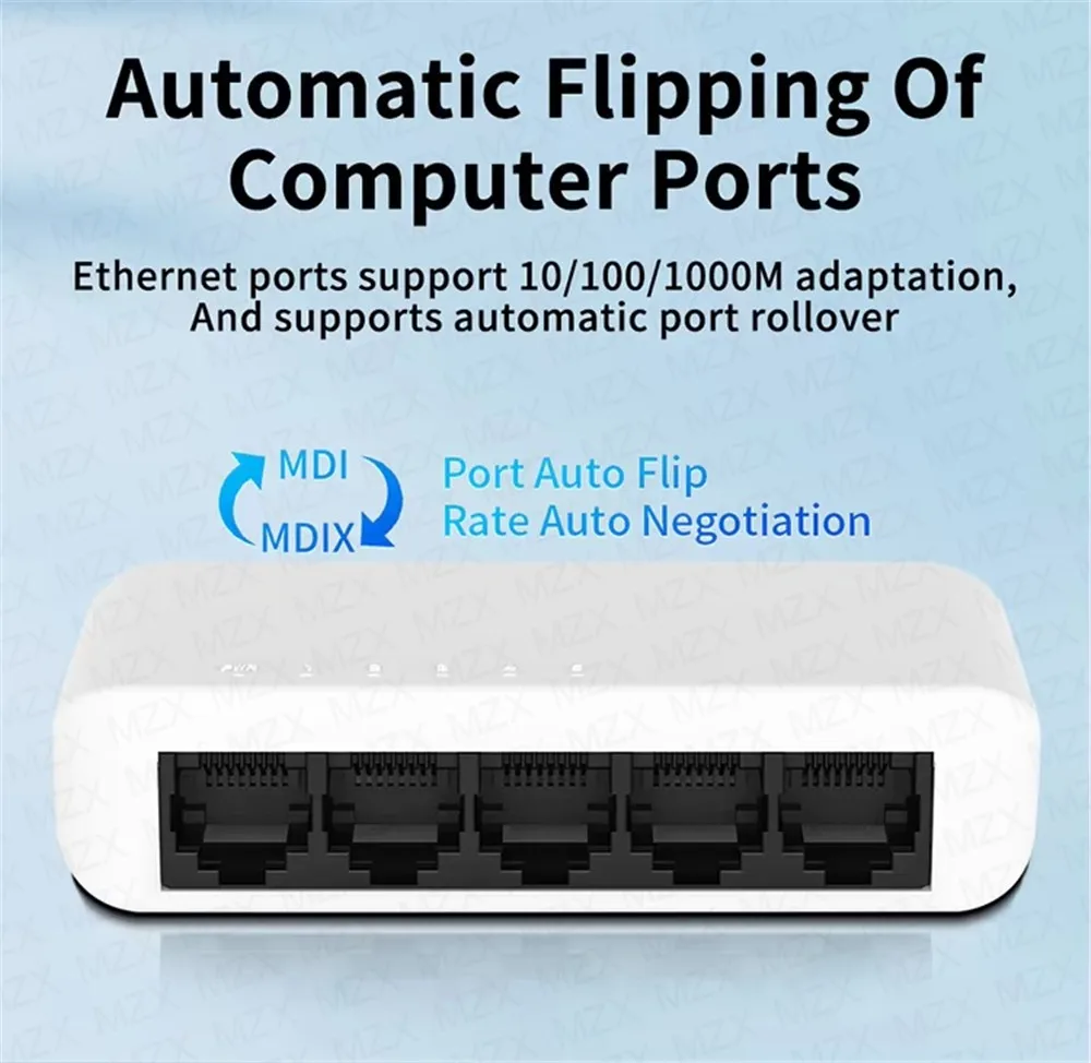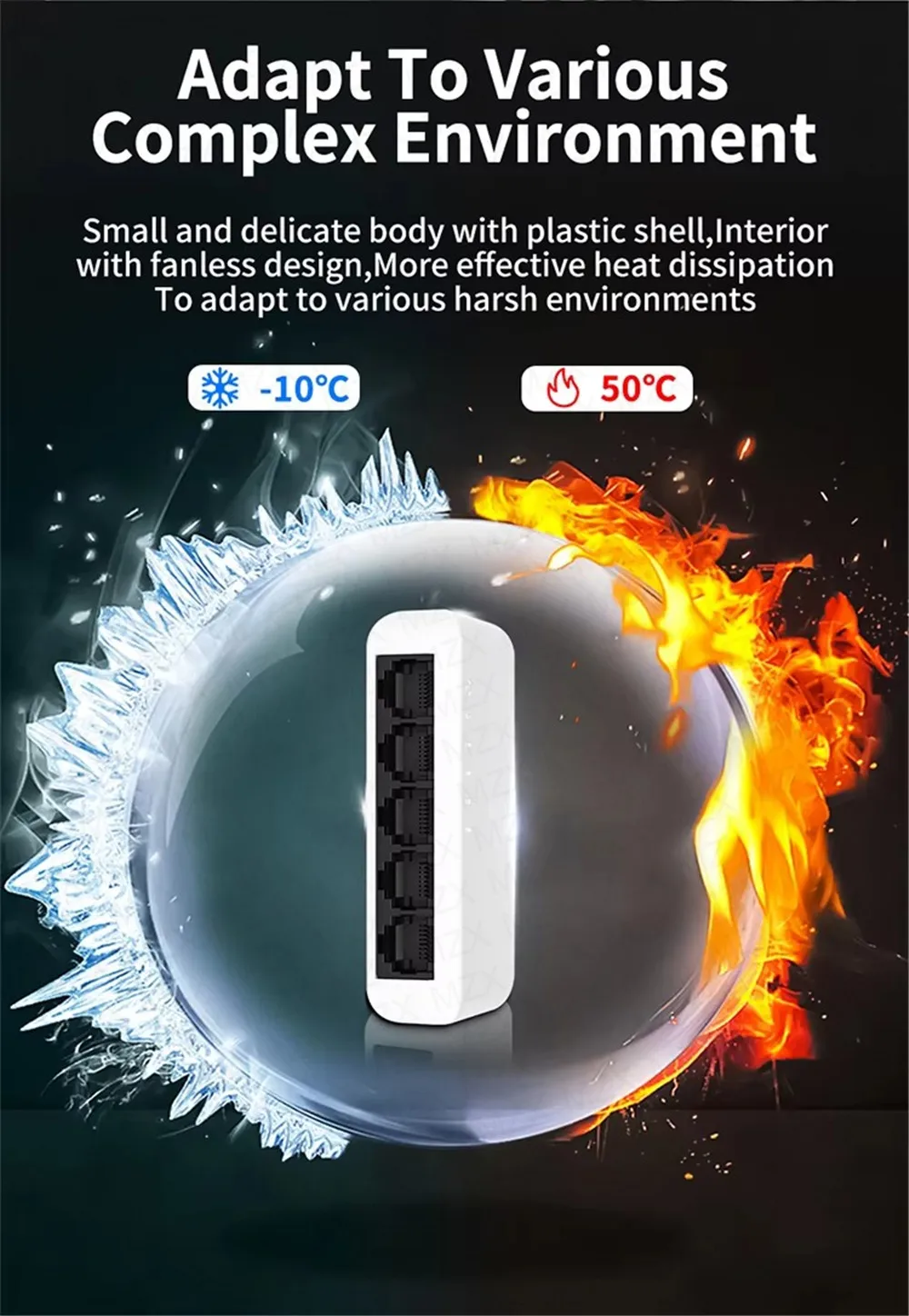 1000Mbps Gigabit Network Switch 5 Ports Switcher RJ45 Hub Mini Ethernet 1000M Stable Smart Networking Internet Injector Adapter